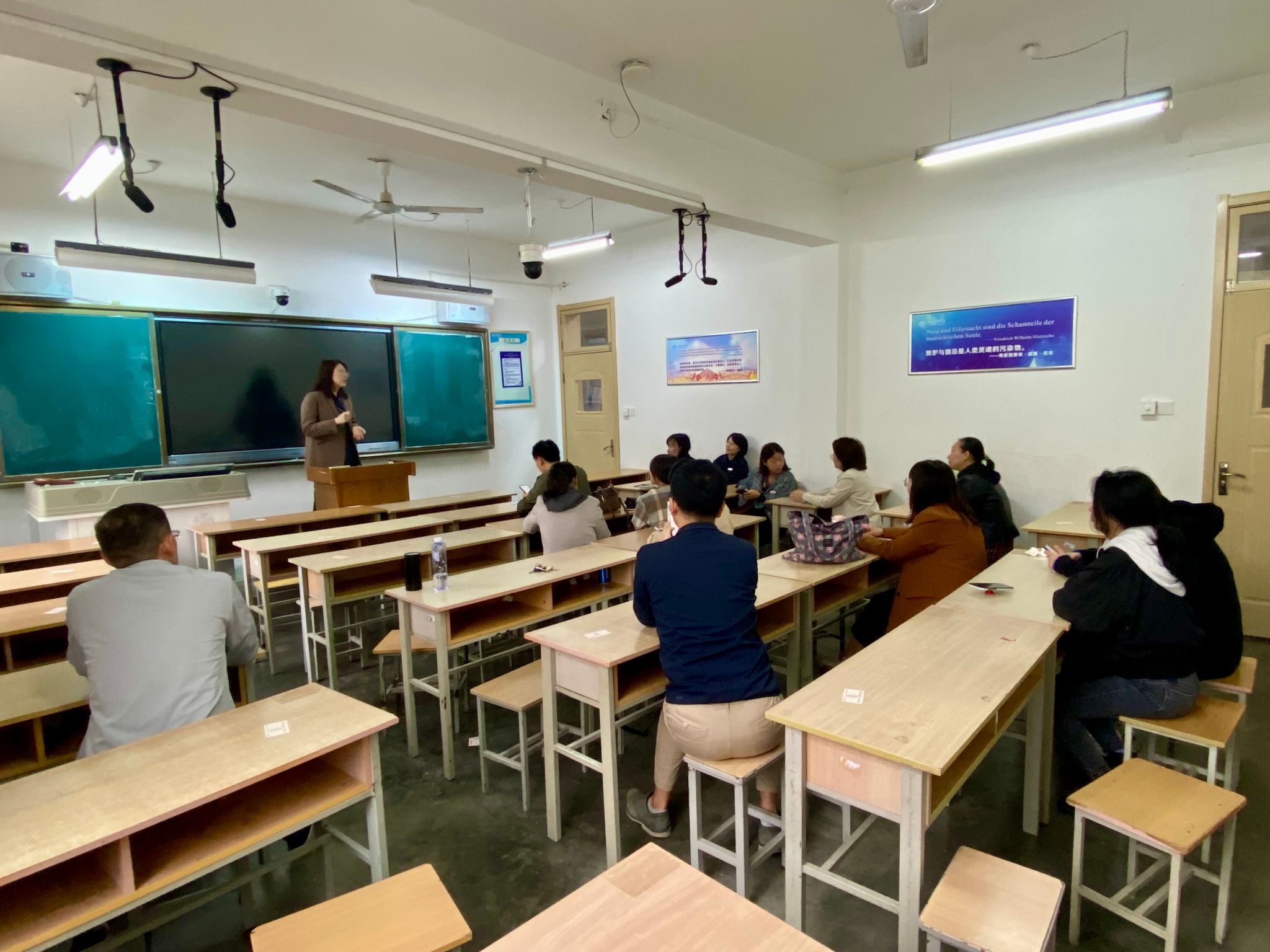 此次教研活动的内容涵盖了教学理论研讨、案例分享等多个方面。与会教师们热烈讨论教学理念,分享成功教学案例,并就教学中遇到的问题和挑战进行深入探讨,同时也分享了在教学实践中的创新思维,以及最新的教学理论和教学技巧。日语专业教师以此次教研活动为平台,积极交流教学经验,提出疑惑,获取前沿知识,丰富教学技能。