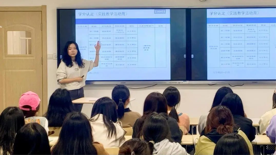 齐娜以实践为导向,详细说明了第二课堂素质拓展活动的具体开展方式及意义,同时对学科竞赛、职业资格(技能)证书的学分转换以及大学生创新创业进行了说明。同时,她特别强调了学业规划的重要性,要求同学们在大学期间应设定短期与长期目标,制定适合自己的学习计划。她鼓励新生们根据自己的兴趣和长远职业规划,选择合适的实践机会。