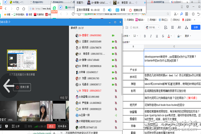 由于疫情防控需要,按照学院安排,beat365在线唯一官网法语系2021级《基础法语I》期末考试延迟至2021-2022学年第二学期初进行。为加强学生对本学期该课程所学知识的巩固,解决学生在复习过程中遇到的问题,任课老师在线上以不同形式为学生进行答疑辅导。主要采取如学习通课程平台讨论答疑、qq群聊天解答、在线直播答疑辅导等形式。