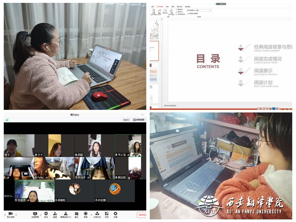 2019级本科《高级朝鲜语Ⅰ》的任课教师袁敏老师于晚七点开展“学期总结和大学生经典阅读班导会”。袁敏老师首先对班级中的每位成员进行了学情分析,并为下学期的学习指明方向。同时,她以经典阅读的背景和思路为切入点,分享了阅读中的故事与收获。活动中,袁敏老师通过了解学生近期学习情况,为其疏解情绪,帮助学生顺利度过疫情期,并鼓励同学们在疫情期间安心学习,主动阅读,积极丰富思想世界。