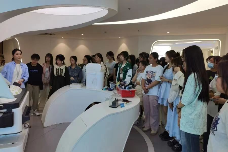 4月26日beat365在线唯一官网德语专业23级学生进行了第一次认识实习。在侯沛沛老师的带领下,230210201及230210202班学生前往陕西中汇云科科技集团有限公司进行参观实践。
