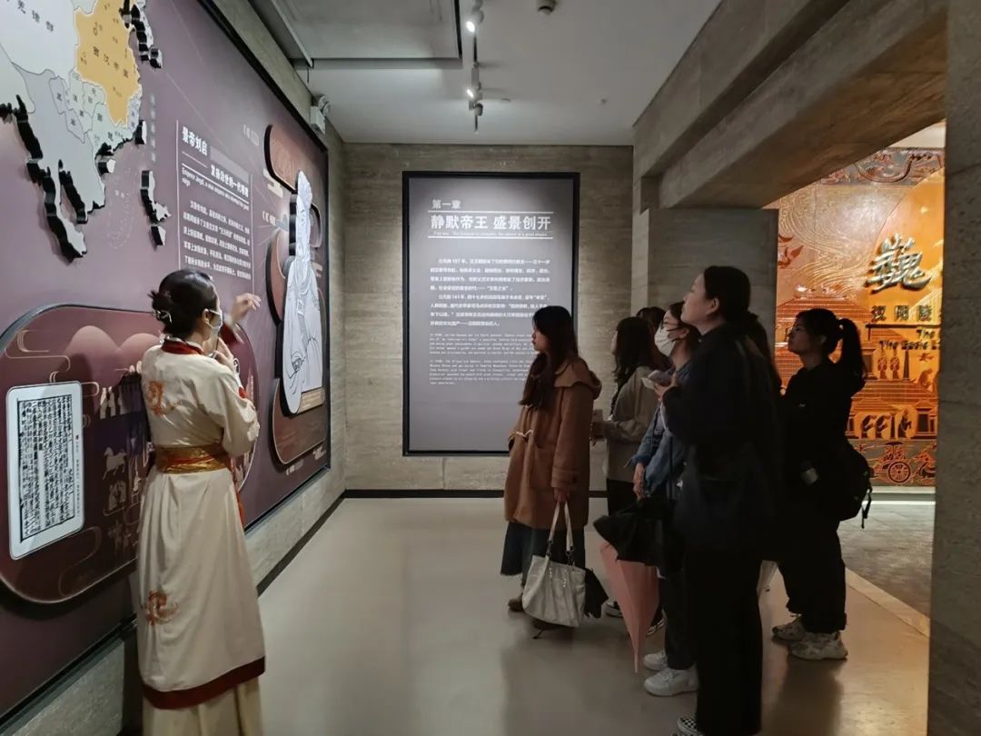 汉景帝在位期间持续推行了一系列利民政策,推动了当时的社会经济向前发展。当同学们参观到这座全世界最大的地下博物馆时,同学们对博物馆宏大的规模而惊呼。同时也让同学们多角度地欣赏文物,亲身感受到昔日西汉皇帝多姿多彩的宫廷生活。