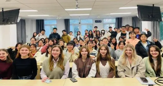 同时,俄语专业邀请了部分俄罗斯留学生参会。俄罗斯留学生向 2023 级新生介绍了自己俄罗斯的母校,他们表示,中俄两国友谊深厚,欢迎同学们以后到俄罗斯学习。现场气氛热烈,同学们反响良好。