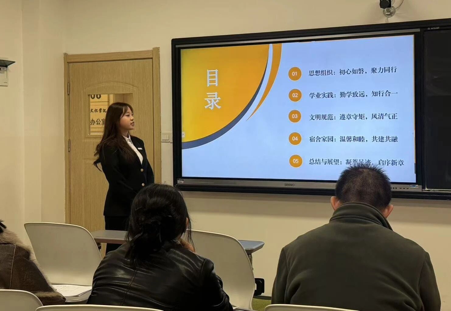 各候选班级代表通过精心制作的PPT和视频,生动阐述了班级在思想建设、学风建设、班风建设、文化活动以及集体荣誉等方面取得的丰硕成果。有的班级聚焦学风建设,分享“一对一帮扶”“学习小组打卡”等有效举措,展现班级优良学风;有的班级突出思想引领,讲述主题团日、主题班会等活动开展情况,彰显班级浓厚的正能量氛围;有的班级注重全面发展,展示文体活动、志愿服务中的集体风采,体现班级强大的凝聚力与向心力。一个个团结友爱、积极进取的班集体故事,体现了同学们强大的凝聚力和集体荣誉感,赢得了现场评委和观众的阵阵掌声。
