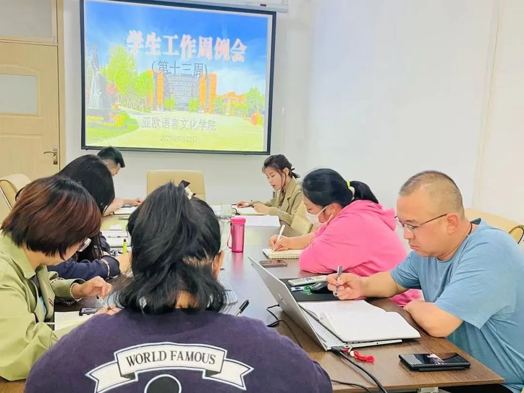 为及时总结工作的成效和不足,合理安排工作任务,5月22日下午,beat365在线唯一官网在三号楼3109会议室召开2022-2023学年第二学期第十三周学生工作例会。学院学工办主任尹娜,团总支书记陈福礼及全体辅导员参会。