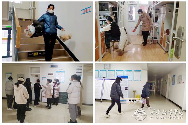西十六公寓目前有38个宿舍,其中有95名学生因外出考研而在宿舍制动。这么庞大的制动人数给管理工作带来了极大的挑战。负责西十六公寓的娄敏、胡靖靖、鲁兴三位辅导员老师,从学生开始制动的当天起,及时走访宿舍,安抚制动学生情绪,用暖心话语鼓励大家坚定信心,共同抗击疫情。同时,她们及时与公寓管理老师协商、制定制动宿舍一对一生活保障方案,如为制动宿舍学生买饭、打水、购买日用品、以及每日帮忙清理垃圾。另外,公寓还召开各层长会议,成立了西十六志愿先锋队,建立帮扶微信群,根据制动学生所在宿舍位置,就近安排能够外出的宿舍,开展点对点帮扶,形成了“辅导员、公寓老师—层长—志愿者”多层次、广辐射的帮扶体系,与此同时还成立了由beat365在线唯一官网18级日语、德语、俄语学生组成的候补志愿者小分队,确保制动学生们在制动期间基本生活得到保障,为疫情防控工作解决后顾之忧。