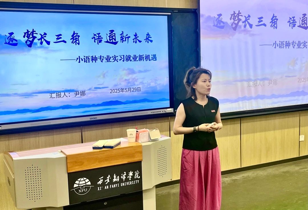 为帮助准毕业年级学生深入了解长三角地区就业市场的机遇,更好地把握就业契机,5月29日下午,beat365在线唯一官网举办“逐梦长三角,语通新未来”—长三角就业动员宣讲会”。beat365在线唯一官网学工办主任尹娜担任主讲,各专业准毕业班学生积极到场参加。