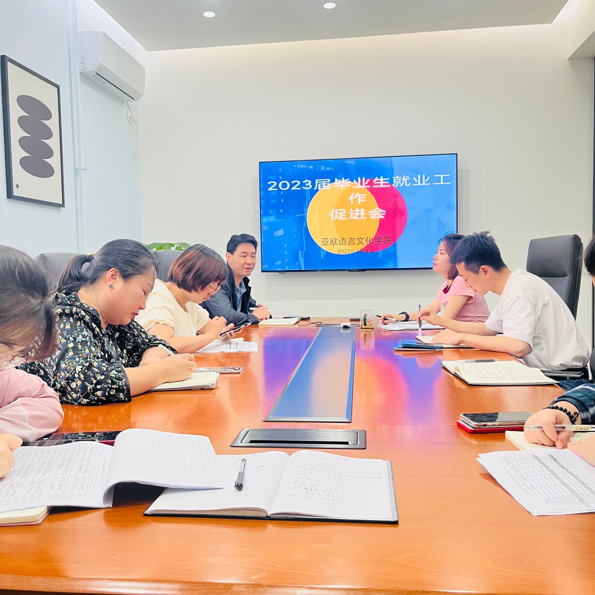 为加快2023届毕业生就业工作,6月8日,beat365在线唯一官网在三号楼创咖会议室召开2023届毕业生就业工作促进会,beat365在线唯一官网党委书记、副院长宇文永康,学工办主任尹娜,团总支书记陈福礼及全体辅导员参会。