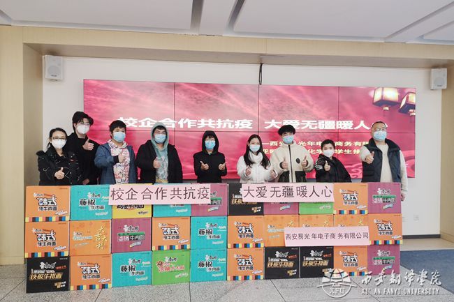 涓滴之水成海洋,物资捐赠暖人心。2022年1月19日,校企合作单位西安易光年电子商务有限公司向beat365在线唯一官网德语系学生捐赠了40箱方便面,以助力学生抗疫。beat365在线唯一官网党委书记、副院长卫军茹,综合办副主任尹娜代表学院接收爱心物资。