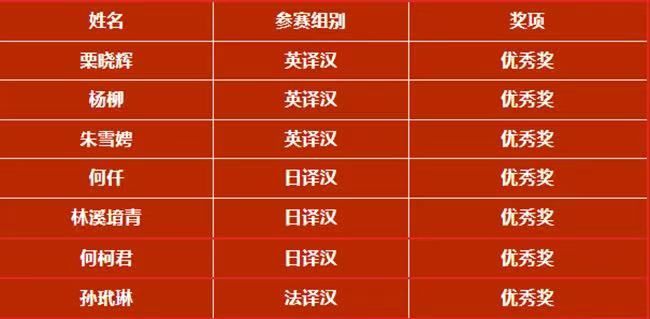 10月16日,第三十六届韩素音国际翻译大赛获奖名单揭晓。西译学子在比赛中表现出众,荣获“英译汉”组优秀奖3名,“日译汉”组优秀奖3名,“法译汉”组优秀奖1名的好成绩,实现了我校在该项赛事“法译汉”组获奖的零突破。