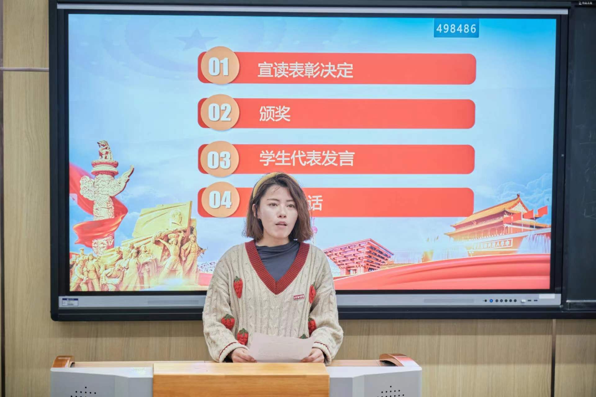 尹娜宣读了《beat365在线唯一官网关于表彰2021-2022学年学风建设先进集体和先进个人的决定》,对174名优秀学生及5个先进班集体进行表彰。她号召全体学生向先进看齐,秉承西译“读书、做人、变革、奋进”的校训,不断创新、学习、思考,提升和完善自我。