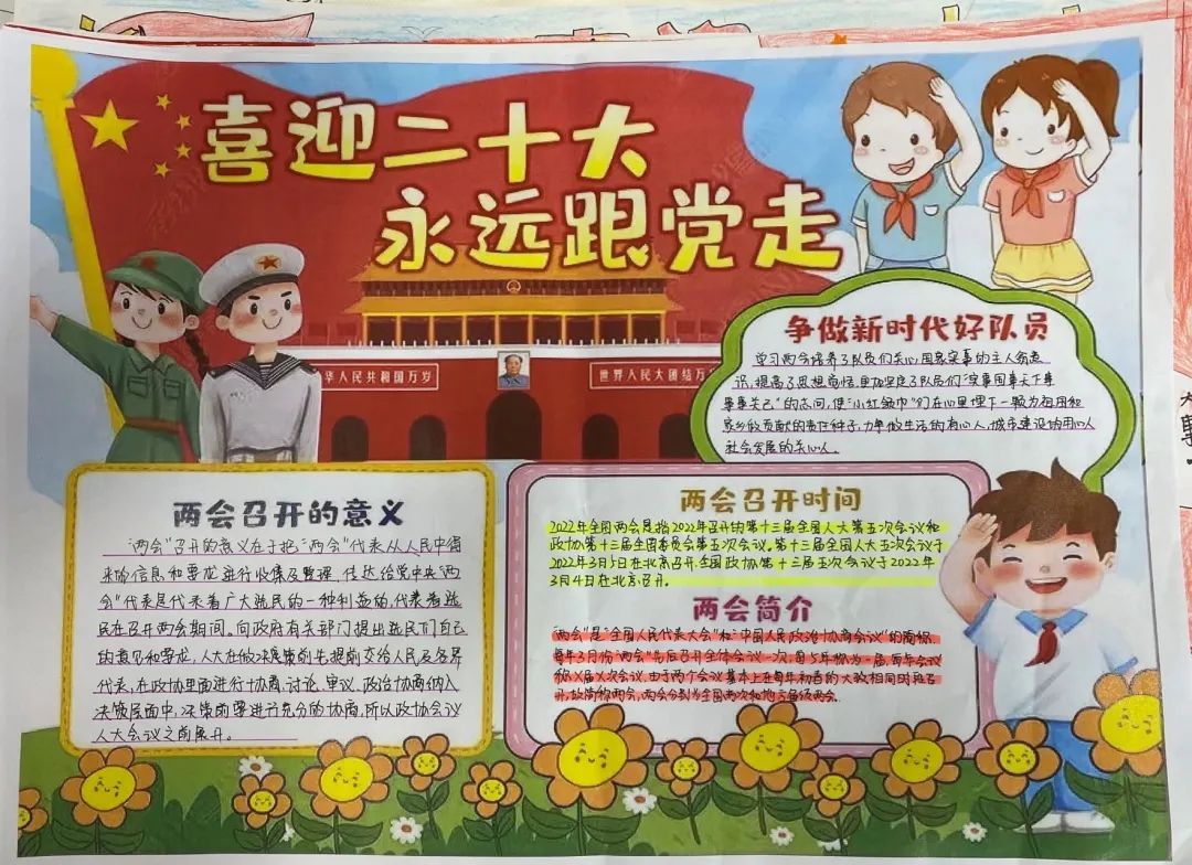 手抄报以“喜迎二十大、永远跟党走”为主题,以弘扬红色精神、宣传党的知识为主要内容,大家积极参与,围绕主题用心搜集资料,自主设计版面,尽情挥洒真情的色彩,表达了对党的热爱和祝福。