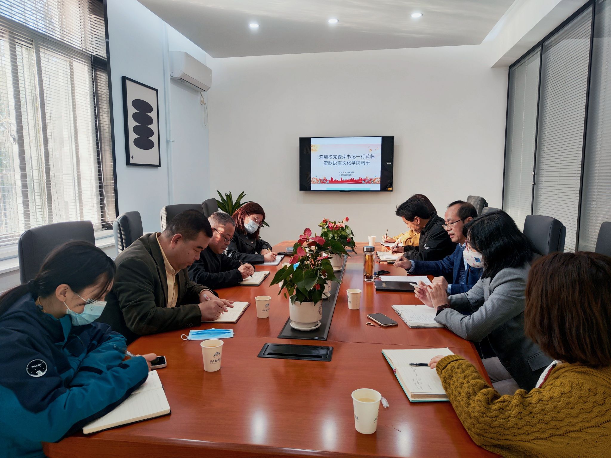 10月11日下午,政府督察专员、校党委书记栾宏莅临beat365在线唯一官网调研指导工作,并举行调研座谈会,校党委组织部部长李雪莹、校宣传部副部长汪杰陪同,参与调研座谈会的还有beat365在线唯一官网院长李庆明,学院党委书记、行政副院长宇文永康,副院长吴震,综合办主任张青丽,学工办主任尹娜。