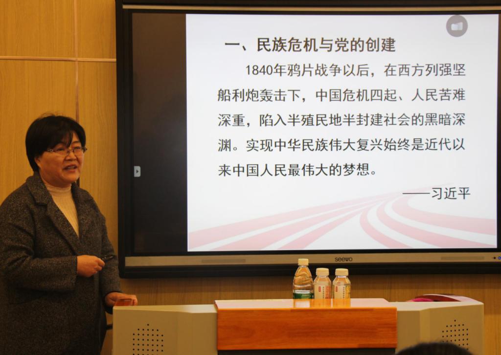 张亲霞教授以扎实的历史基础,丰富的历史知识,为我们深入浅出的讲解了中国共产党在中国为什么行?马克思主义在中国为什么行?张教授通过:民族危机与党的创建;国共竞争与民族觉醒;建国执政与走向复兴;民族复兴迈进新时代,这四个方面向我们讲述了中华民族的民族进程。总结出中国近代革命的逻辑:欲民族复兴,必先民族独立;欲民族独立,必先政治统一;欲政治统一,必先社会整合;欲社会整合,必依赖于深耕中国社会的新型政党。这些理念不仅拓宽了我们的学习思路,也加深了我们对党史的理解与感悟,让我们感受到了民族复兴的坚定脚步,更体会到了中国特色社会主义的曲折探索。