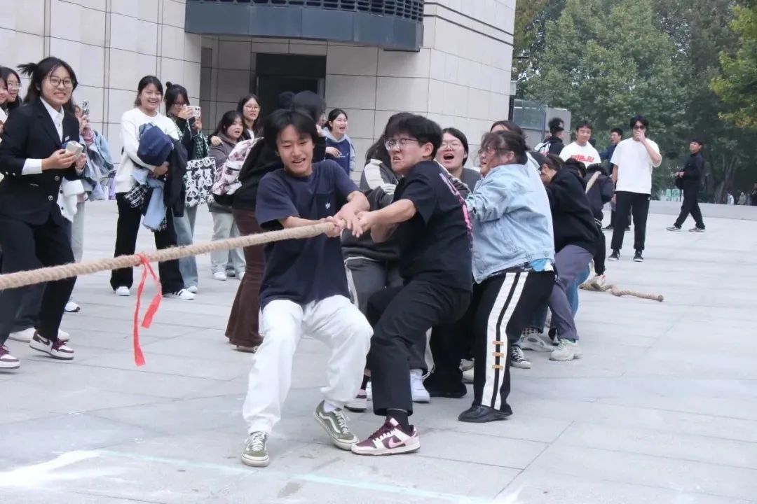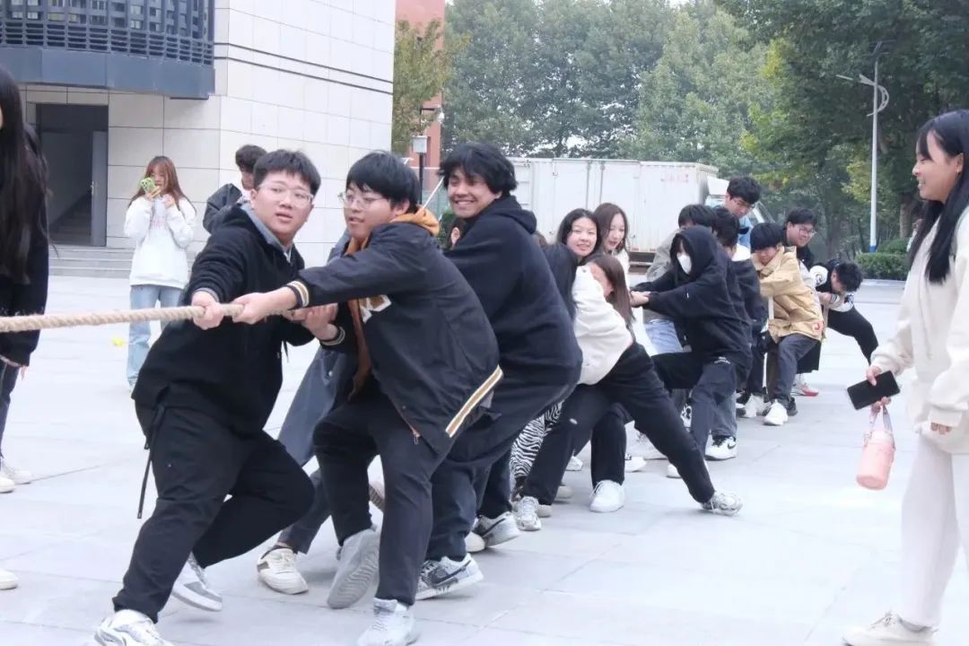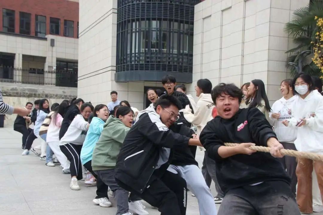 各班参赛的同学们谨遵院长的教诲,秉持着友谊和安全第一,比赛第二的原则,在赛场上尽情的挥洒汗水,紧握长绳,拼尽全力,为自己班级争光。