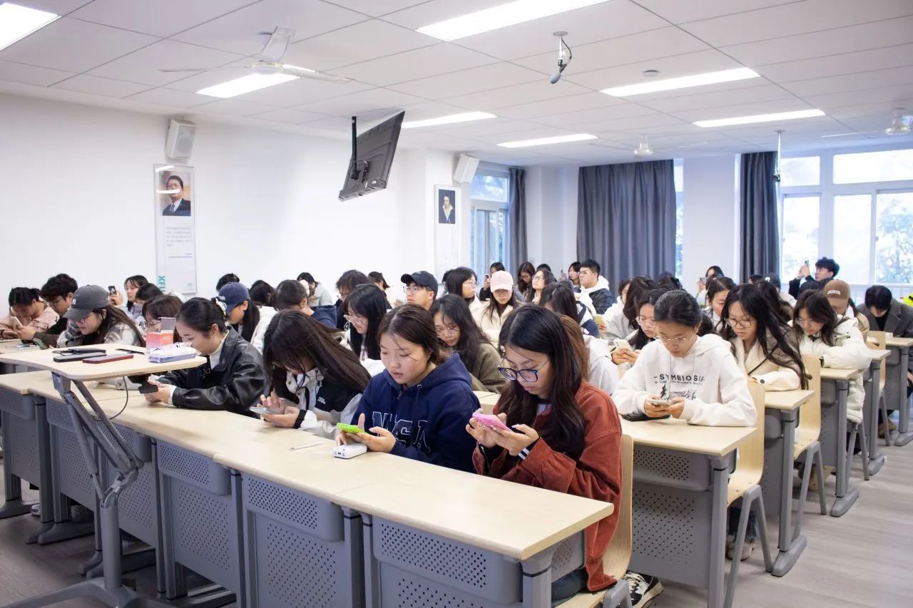 黄丽娜介绍了竞赛的内容、比赛安排、参赛路径、晋级细则、奖项设置和答题相关要求。此次知识竞赛内容丰富多样,初赛设单选题、多选题、判断题三类题型,涵盖多个领域,同学们手机扫描二维码登录系统后,系统随机抽题,通过答题,旨在全方位展示中华民族共同体意识的重要性及其现实意义。在场的同学们都能够高度重视此次知识竞赛答题活动并认真作答,营造了良好的氛围。