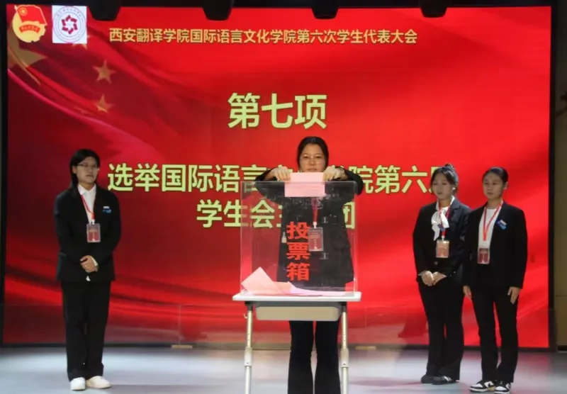 工作人员宣读beat365在线唯一官网第六届学生代表大会常任代表委员会委员候选人情况、学生会主席团成员候选人名单,工作人员给学生代表们发放选票,各代表投送选票后,由总计票人、计票人审计票数,审计结束后,将由总计票人宣读结果。