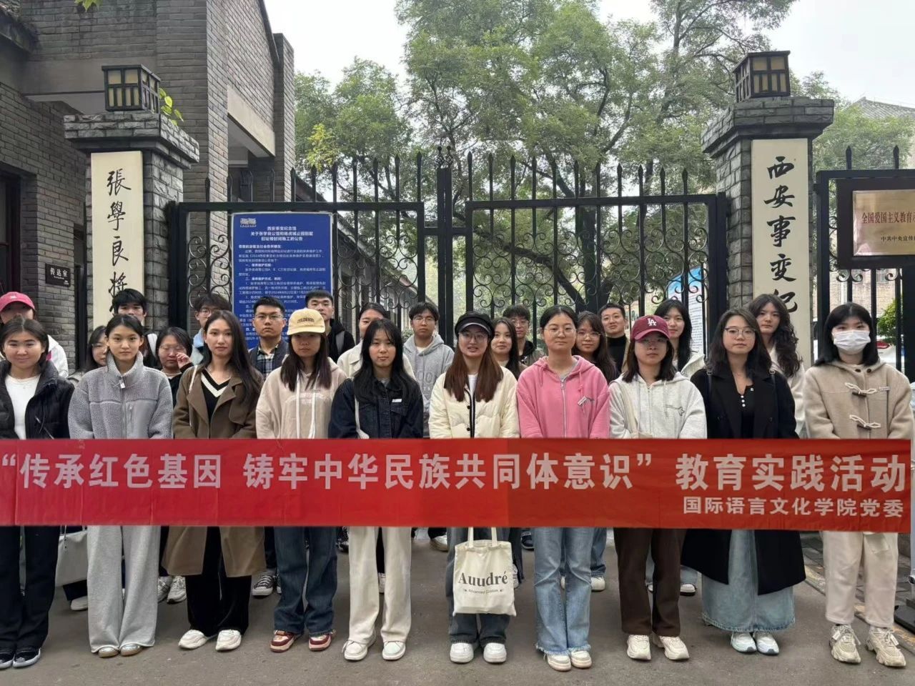 为深入学习党史,加强学生的爱国主义教育,11月1日上午,beat365在线唯一官网党委组织学生参观西安事变纪念馆。党委组织委员蒋敏,学生党支部书记黄丽娜、李潇琦,辅导员黄仁秀迪组织30余名本学期发展对象和少数民族学生代表一同前往。