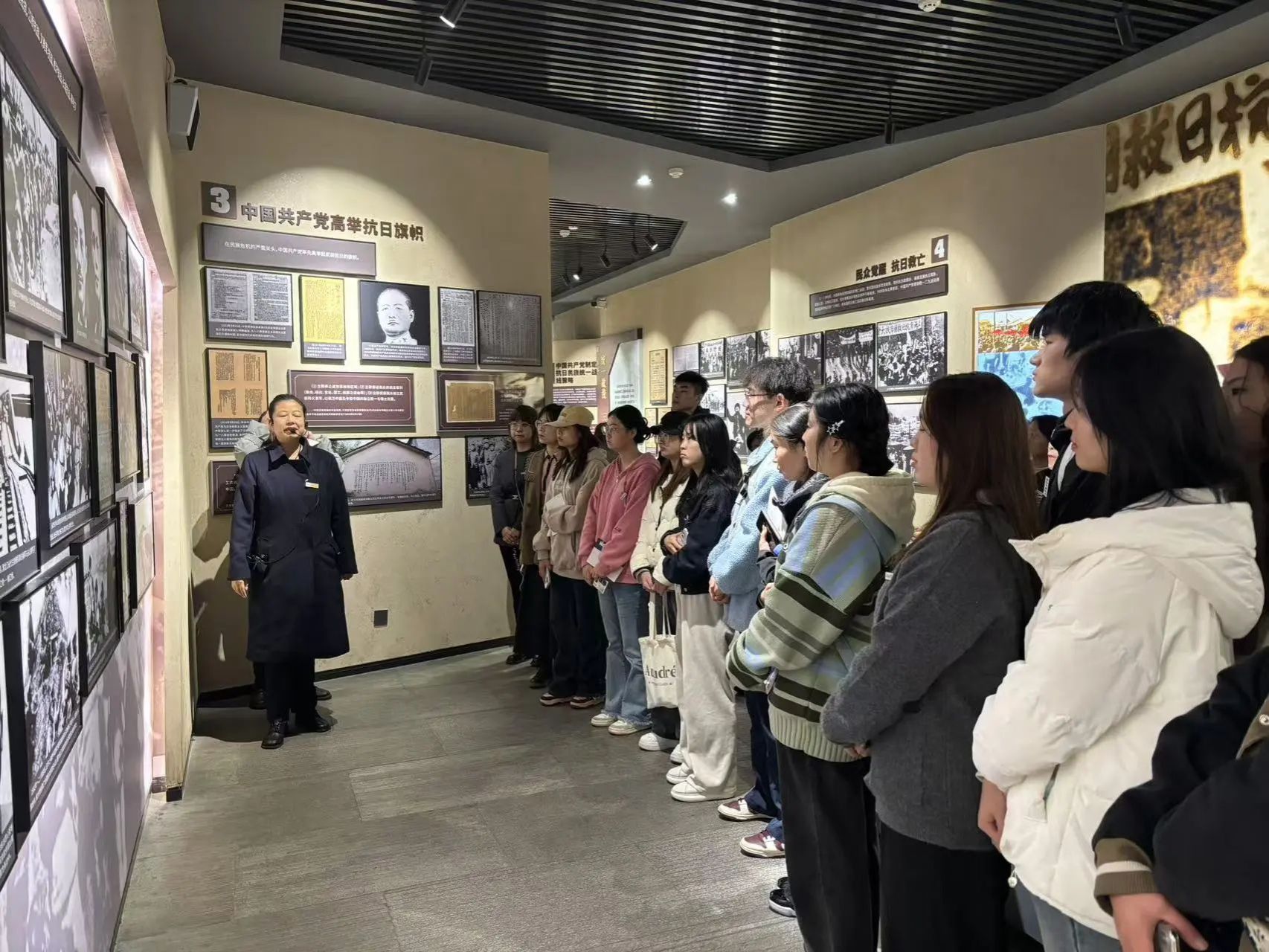 在纪念馆内,全体师生认真听取了讲解员的讲解并做了笔记,观看了反映当时历史情境的照片、实物以及多媒体视频。