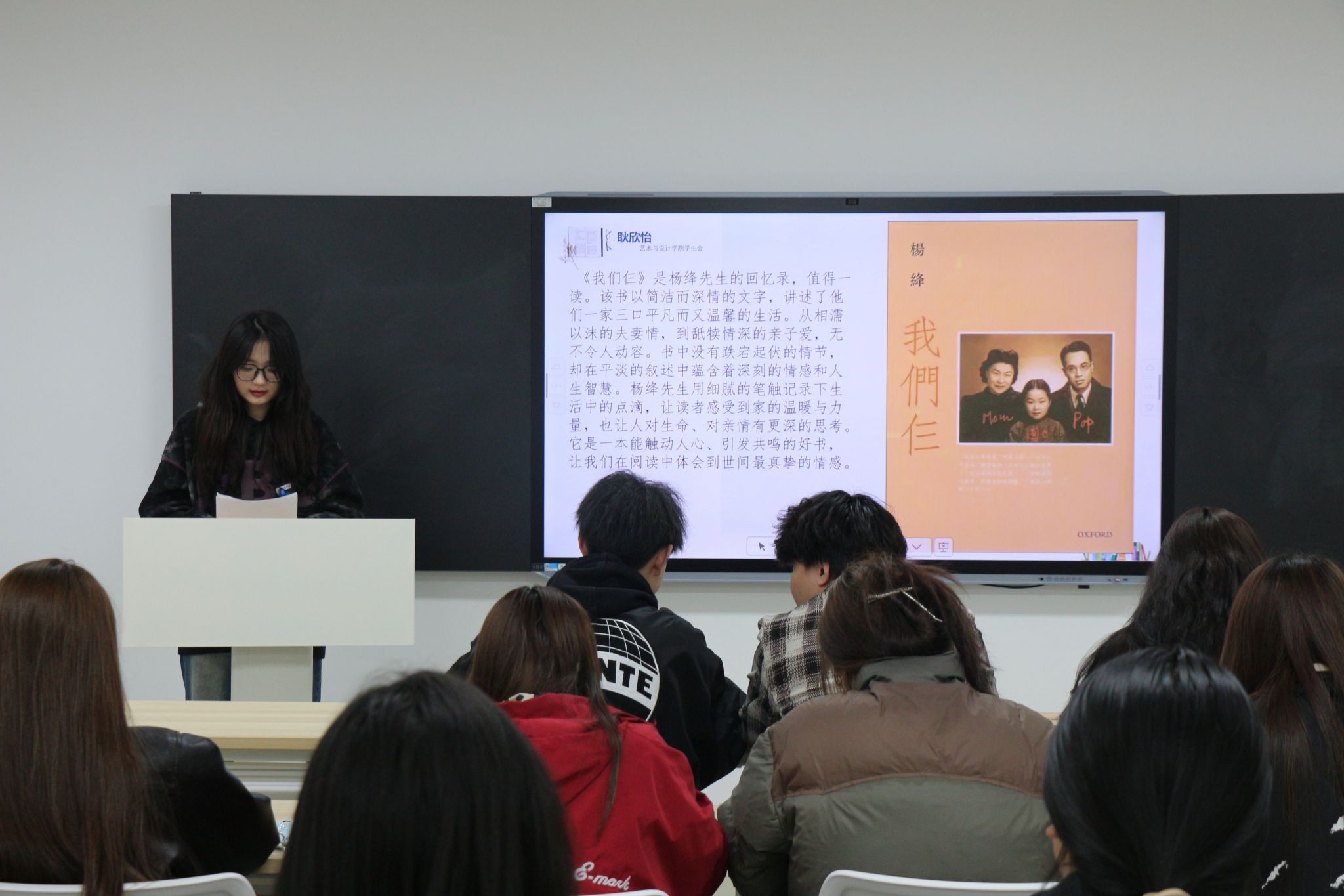 艺术与设计学院学生会代表耿欣怡分享《我们仨》,初读该书仿佛推开温馨家庭之门,书中一家三口柴米油盐、读书治学的日常,让她意识到幸福藏于平凡瞬间,应珍视与家人相处时光。面对时代风雨,三人相互扶持守护家庭,体现家庭是面对困难的强大支撑。杨绛先生对丈夫和女儿的深切怀念,更让她懂得珍惜眼前人。她认为《我们仨》是对亲情、爱情与家庭的礼赞,自己读完对家人情感更深,也更懂爱与珍惜,愿融入生活与家人书写温暖篇章。