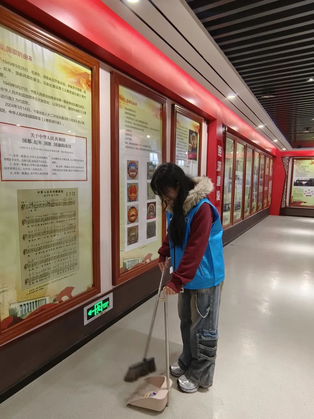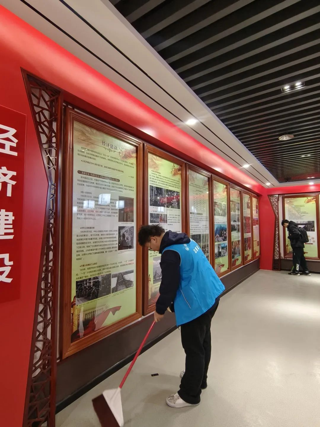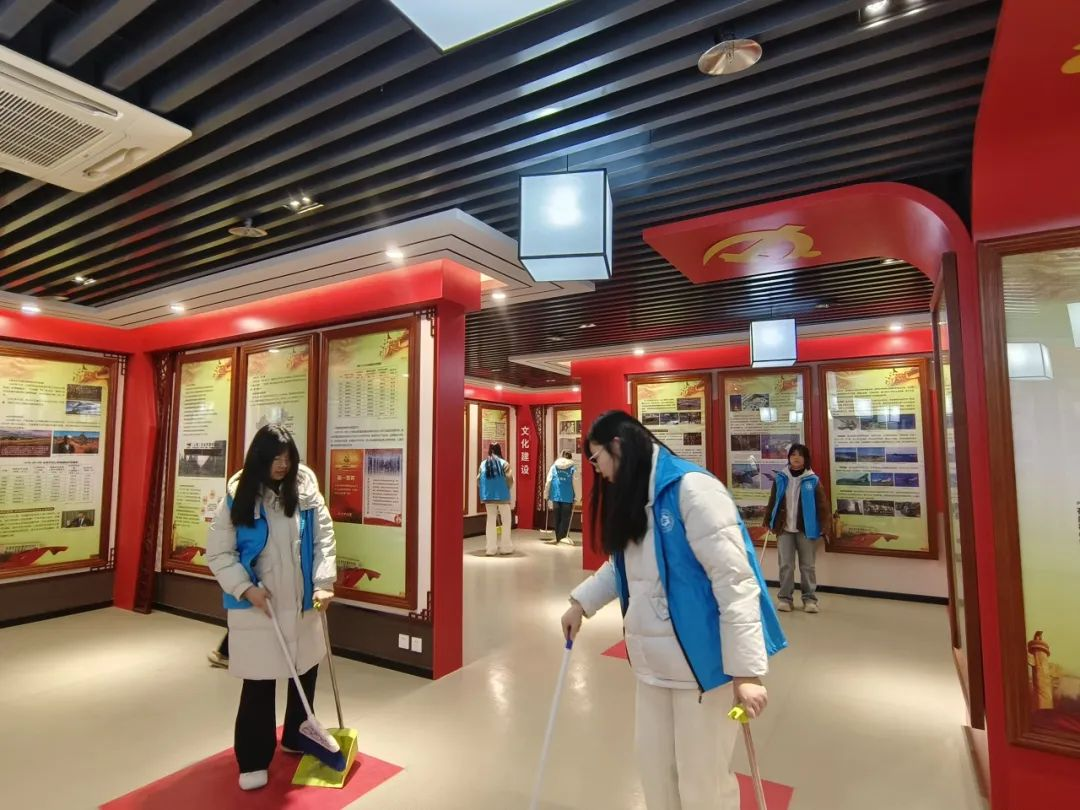 志愿者们认真打扫东区演播大厅,以无私奉献的精神践行了全心全意为人民服务的雷锋精神。他们细致地擦拭座椅、清扫地面、整理设备,确保演播大厅焕然一新,为学院的文体活动场地营造了一个整洁、舒适、充满活力的环境。同时,志愿者们还积极参与整理器材、布置活动场地,保障每一次文体活动顺利进行。在这个过程中,他们展现了新时代青年的责任与担当,不仅为同学们提供了更好的活动空间,也进一步丰富了校园文化生活,彰显了学院积极向上的精神风貌,为学院文化体育建设贡献了自己的青春力量。