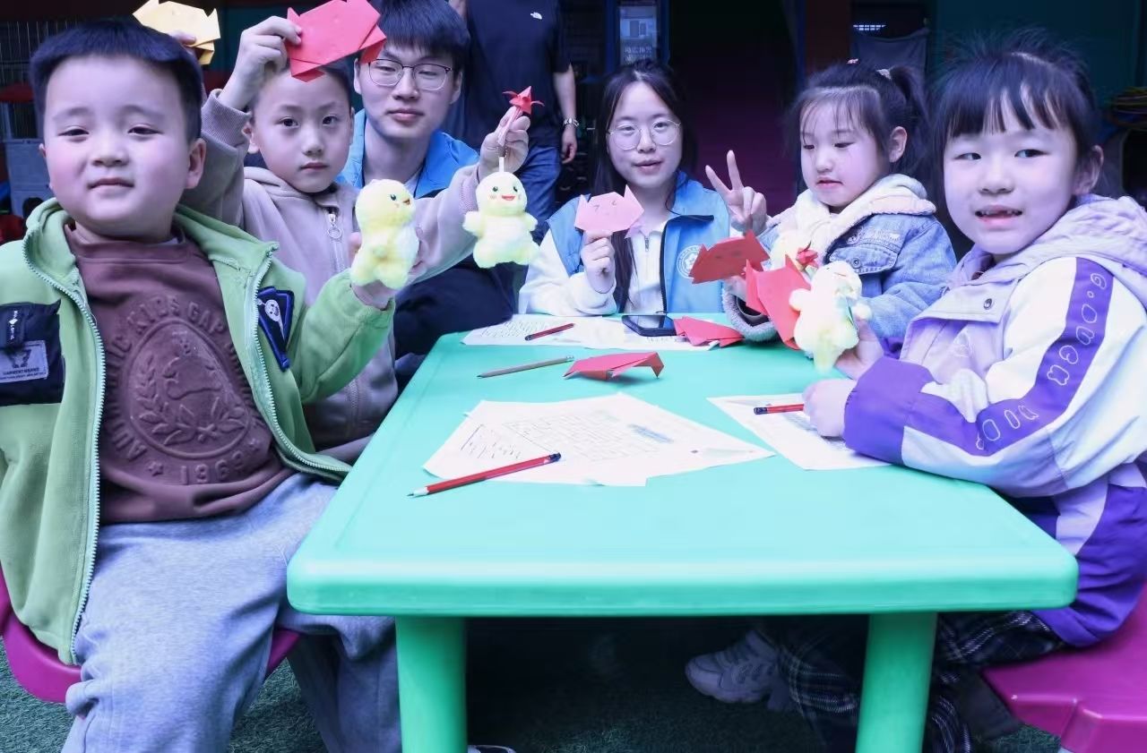 在手工制作环节,志愿者们为孩子们准备了五颜六色的彩纸和安全剪刀。在志愿者们的耐心指导下,小朋友们认真地学习折纸技巧,一张张普通的彩纸在稚嫩的小手中变成了活灵活现的小青蛙。
