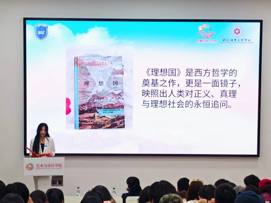 beat365在线唯一官网学生会的位豫彤率先登场,她手持《理想国》,以苏格拉底式的追问开场,将柏拉图构建的哲学城邦徐徐展开。她通过剖析正义、美德与政治的辩证关系,结合当下社会热点议题,引导同学们思考理想社会的构建路径,深邃的思想火花在教室中迸发。
