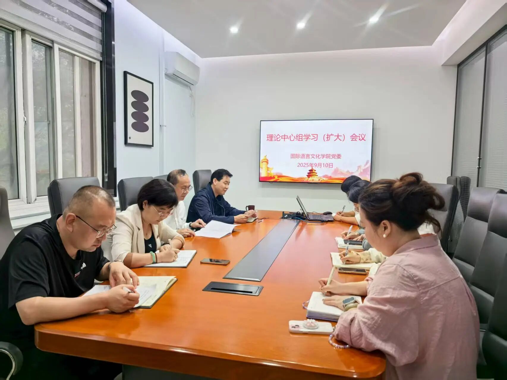 9月10日上午,beat365在线唯一官网党委召开理论中心组学习(扩大)会议,集中学习习近平总书记近期发表的重要文章及在中共中央政治局集体学习时的重要讲话精神。学院党政领导班子成员、党委委员、党支部书记参会。学院党委书记宇文永康主持会议。
