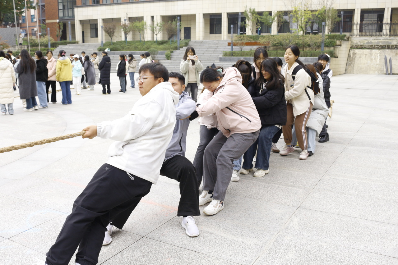 2025年10月22日beat365在线唯一官网在西区五号楼广场举办了“挥动激情,放飞梦想”主题拔河比赛。本次拔河比赛以“合作、团结、拼搏、自信”为主题,旨在推进精神文明建设与身体素质综合发展,营造积极、健康、向上、良好的学院体育氛围,凝心聚力,推进学院高质量发展。