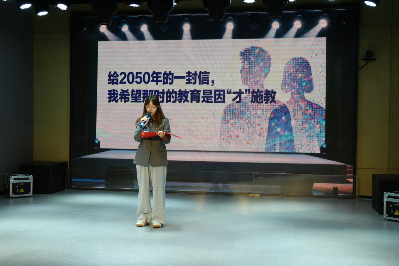 比赛会场氛围热烈,选手们携精心准备的内容登台,从“AI时代的学习方法”、“2050年的教育愿景”、“数智生存力的培养”三个方向出发,以真诚炽热的语言,结合鲜活生动的案例,用观点点亮思维,用表达传递力量,深入诠释对主题的深刻思考。