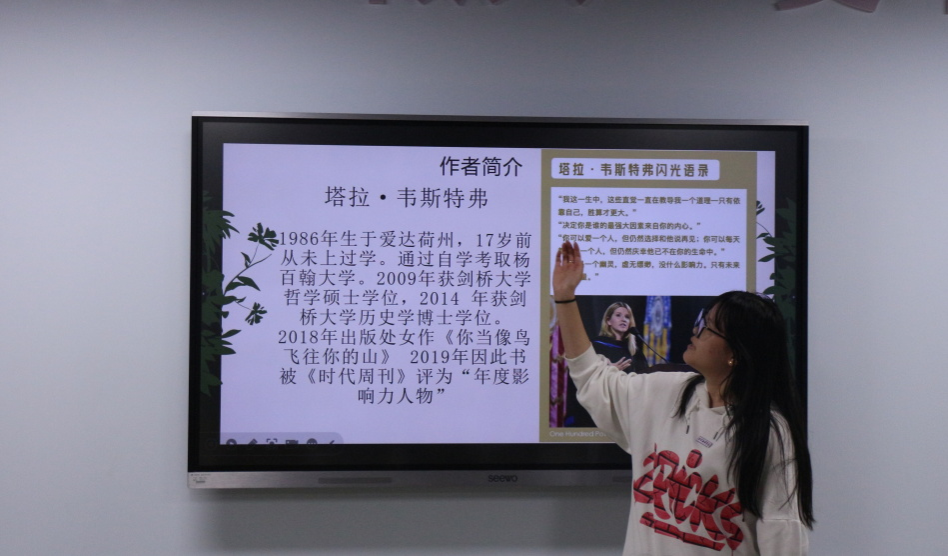 马雨涵同学为我们带来的好书是《你当像鸟飞往你的山》。塔拉·韦斯特弗在《你当像鸟飞往你的山》中展现的关于“感恩”的深刻矛盾。 这个主题如同一把双刃剑,贯穿她逃离原生家庭、重塑自我的全过程。