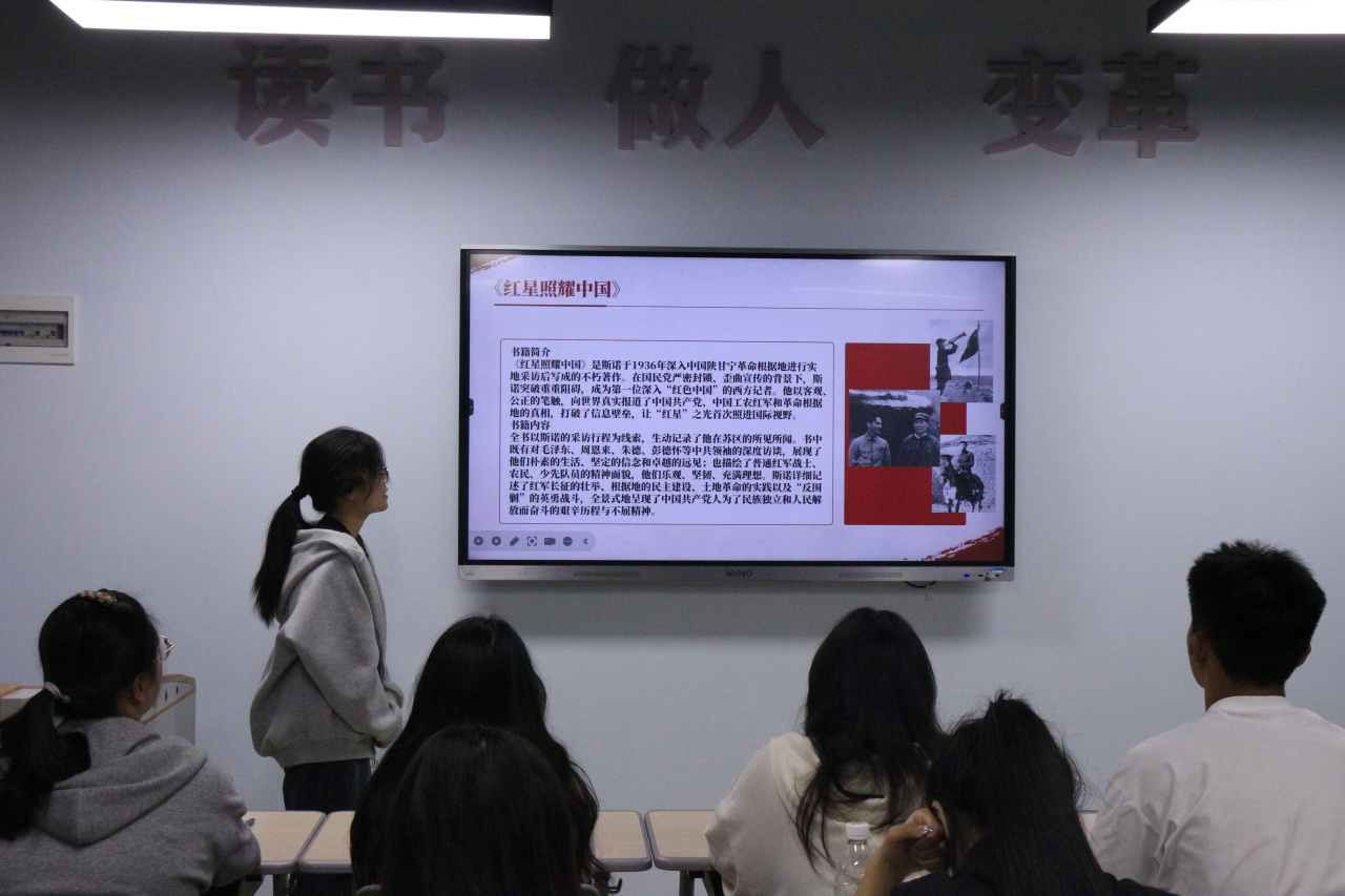 汪聪聪同学为我们带来的好书《红星照耀中国》。《红星照耀中国》是美国记者埃德加·斯诺1936年深入陕甘宁苏区采访后撰写的纪实著作。他突破国民党封锁,首次向世界真实报道中共领导人和红军的革命实践,打破国际社会对红色中国的认知壁垒。书中记录毛泽东、周恩来等领袖的简朴生活与战略远见,展现红军长征壮举、土地革命和根据地建设,揭示信仰与群众路线的力量。