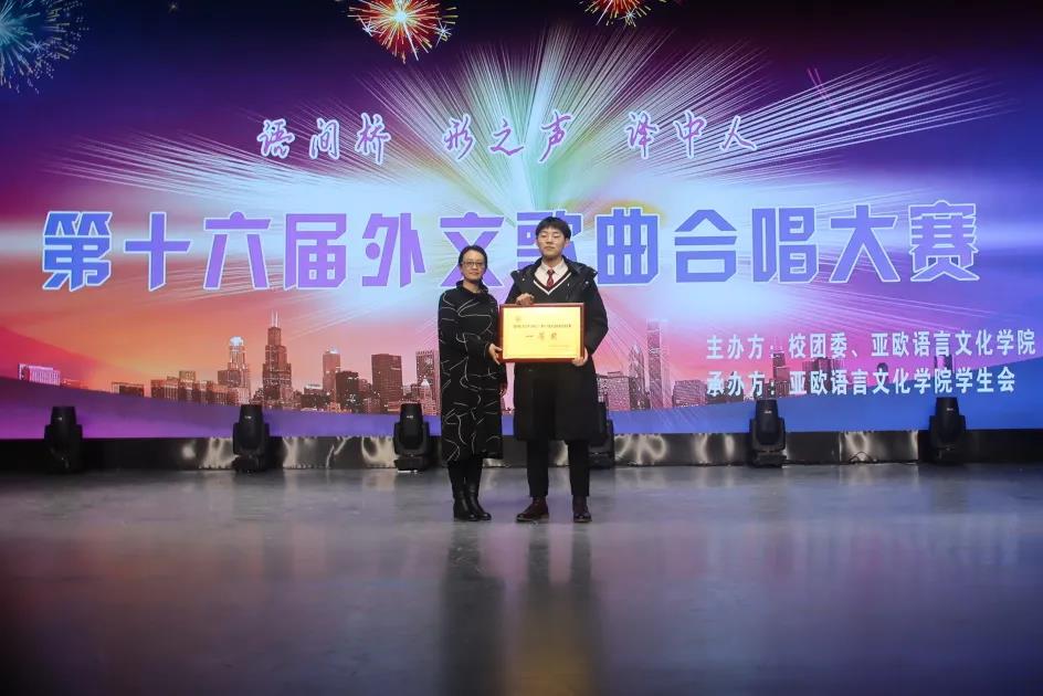 12月1日,由校团委、beat365在线唯一官网主办,beat365在线唯一官网学生会承办的“语间桥 、形之声、 译中人”第十六届外文歌曲合唱大赛在科技楼演播厅举行。