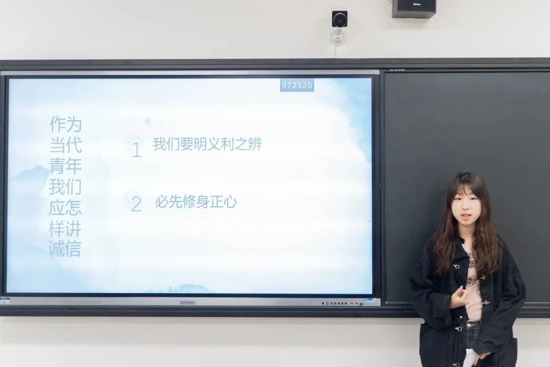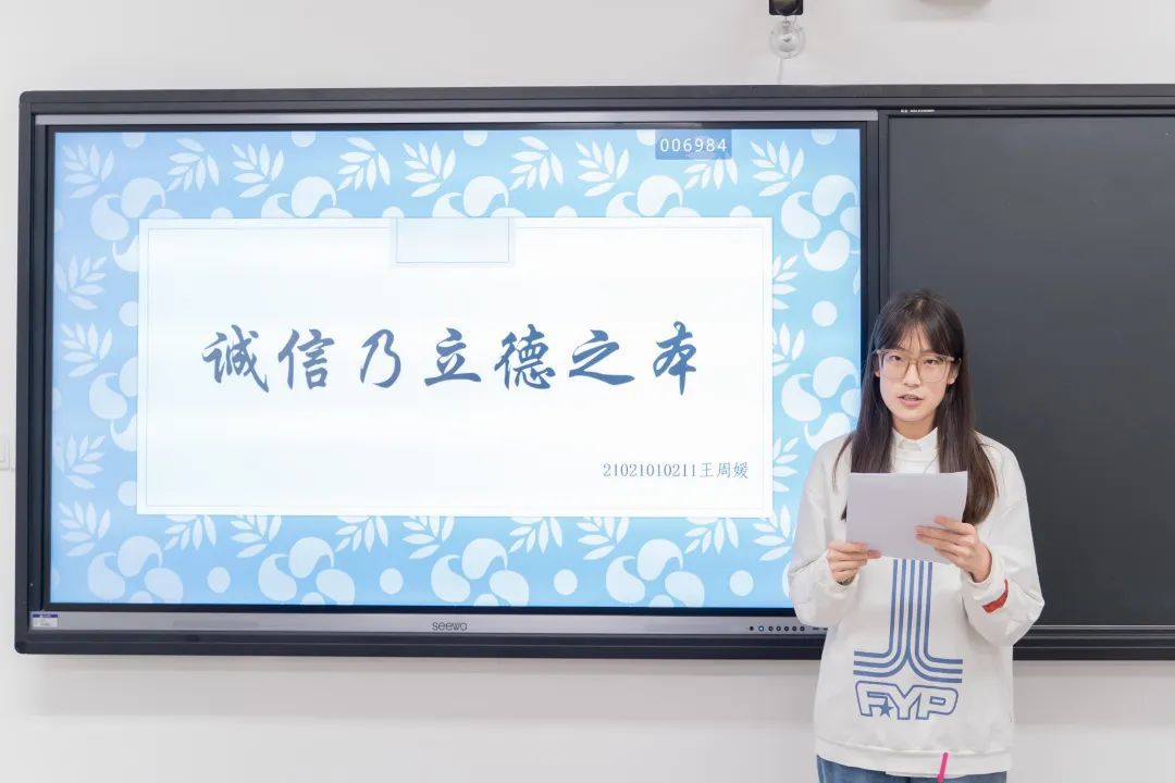 3号选手王周媛坚定的认为《诚信乃立德之本》,从道德、成长的角度探讨了诚信在立德方面的作用。该选手的表现非常出色,语言流畅、思路清晰,深入浅出地论述了诚信在成长中的重要性,引发了观众的共鸣。