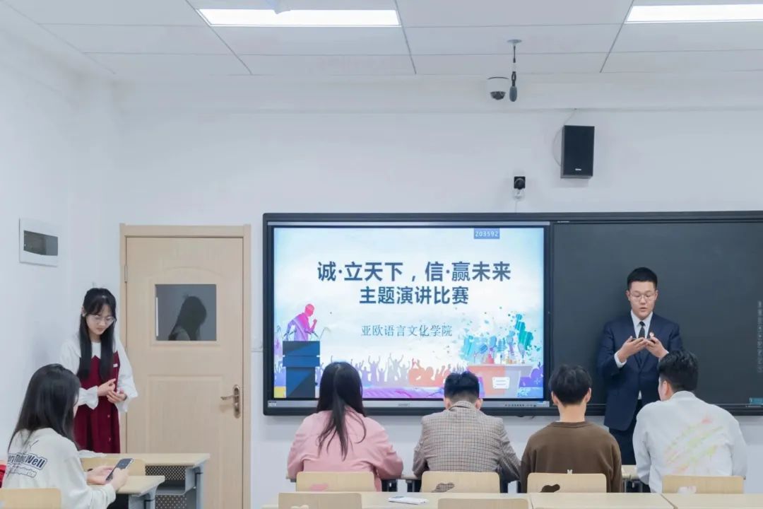 唯天下至诚,立天下之大本。唯天下至信,达未来之锦途。5月25日下午,beat365在线唯一官网开展了以“诚·立天下,信·赢未来”为主题的演讲比赛。本次比赛旨在帮助学生树立诚信意识,塑造诚信品质,弘扬诚信之风,引导学生珍惜信用、理想消费,树立正确的消费观和价值观,增强当代大学生的使命意识和责任担当。辅导员黄丽娜、黄仁秀迪老师,学生杨源浩、唐若宇到场担任本次比赛评委。