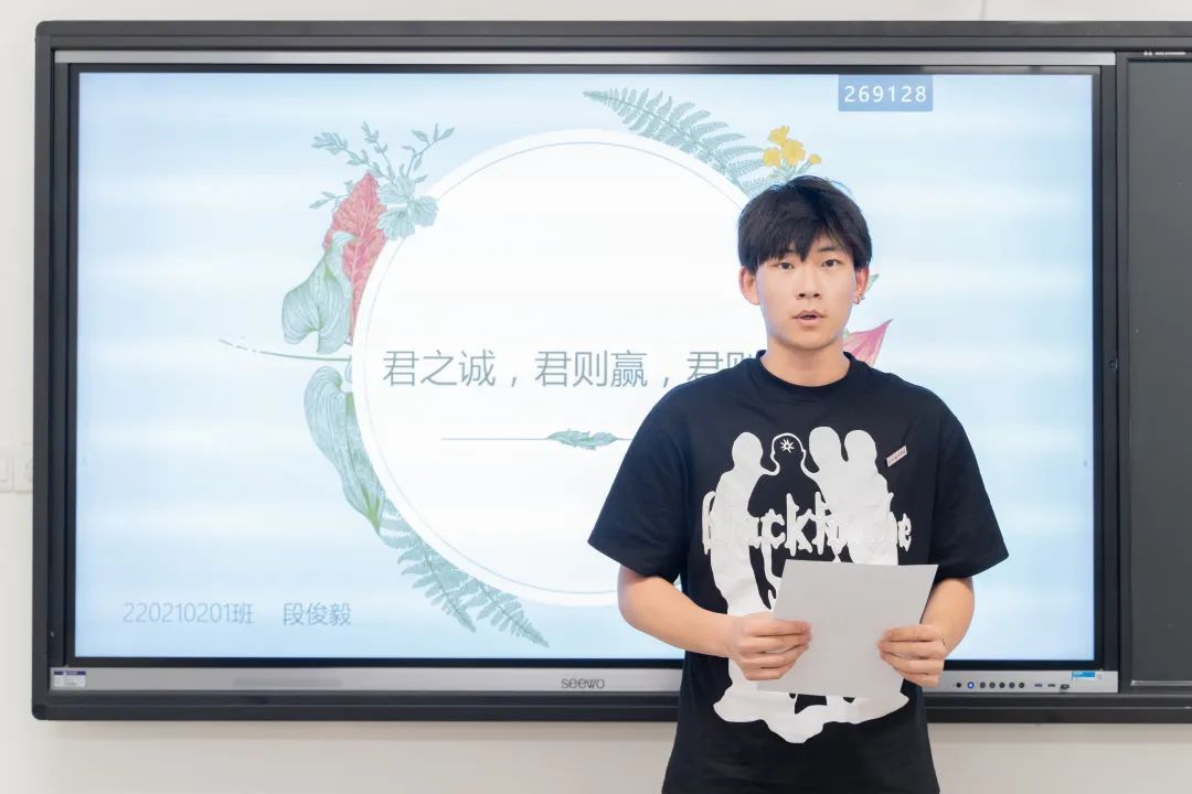 5号选手段俊毅带来的演讲《君之诚,君则赢,君则立》,深刻阐述了诚信对于一个人、一个企业和一个国家的重要性,并指出只有具备诚信才能成就大业。该选手的表现令人钦佩,从言辞到思路都非常出色,其认真的态度和深入的思考体现了他对于诚信的一份执着与坚持。