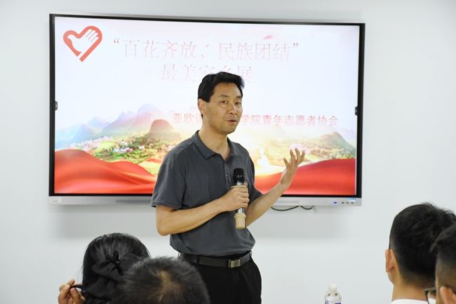 为引导各民族学生铸牢中华民族共同体意识,增强对中华文化、中华民族大家庭的归属感与认同感,加深各民族了解,促进各民族融通,6月14日下午,beat365在线唯一官网在三号楼举行“百花齐放,民族团结”最美家乡展活动。beat365在线唯一官网党委书记、副院长宇文永康,副院长魏海燕,综合办主任张青丽,学工办主任尹娜,团总支书记陈福礼及全体辅导员参加活动。