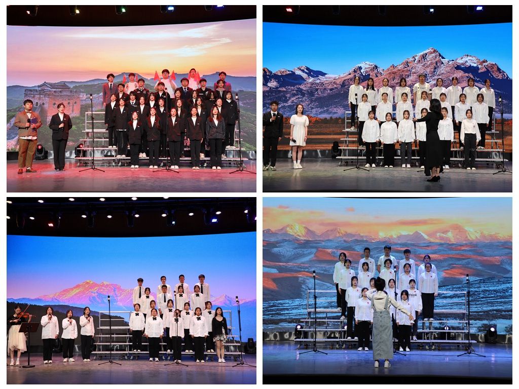 220210101班的同学们带来了青春洋溢的合唱表演《我们都是追梦人》,旋律婉转悠扬,歌声悦耳动听,精彩的表演使现场观众感受到了西译学子的蓬勃朝气与青春活力。220220101班演唱的经典合唱曲目《我和我的祖国》,美妙柔和的音乐配合着饱含感情的歌词诉说了无数中华儿女对伟大祖国的深厚眷恋和热爱。220210601班演唱的《强军战歌》,铿锵有力的歌声唱出了“男儿何不带吴钩”的胆魄和属于铁血军人的勇猛无畏,将战士们不畏牺牲勇往直前的精神展现得淋漓尽致,赢得了观众的热烈掌声。