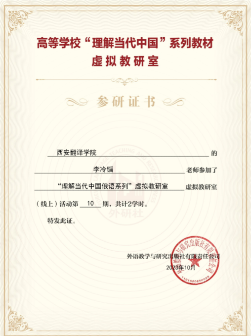 在教学过程中,李老师注重培养学生的思维能力和实践能力,通过互动、讨论等多种教学方法,引导学生主动思考、发现问题并寻找解决方案。对学生严格要求,耐心教导,刻苦钻研教材,不断丰富知识框架,探索教学规律,改进教育教学方法。关注每个学生的学习情况和需求,尽力为他们提供个性化的指导和支持。不论是在工作还是生活中,李老师都相信”Век живи, век учись”(活到老,学到老)。她积极参加由外研社、教育部及学校组织的各类培训活动,不断提升自己的专业素养和业务能力。