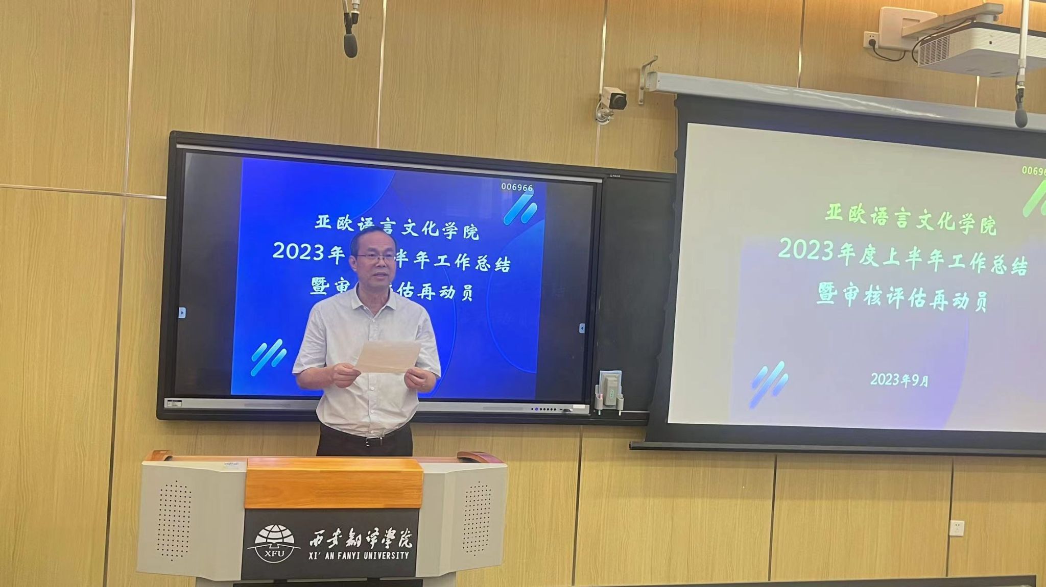 为全面落实审核评估各项准备工作,提升本科教育教学质量,9月15日下午,beat365在线唯一官网召开2023年度上半年工作总结暨审核评估再动员会议。学院院长李庆明,党委书记、副院长宇文永康,副院长吴震及全体教职工参会。会议由李庆明主持。