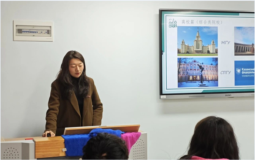 李老师首先从美食篇、美景篇、建筑篇、艺术篇、宿舍篇、学习篇、生活篇、趣事篇几个方面对俄罗斯展开介绍;其次从为什么选择俄罗斯、留学归国福利、学校部分合作项目等方面展开分享。她表示,出国留学不仅意味着学习新的知识和技能,更重要的是接触和理解不同的文化、社会和价值观,帮助大家更好地理解和适应多元化环境,增强跨文化沟通能力。