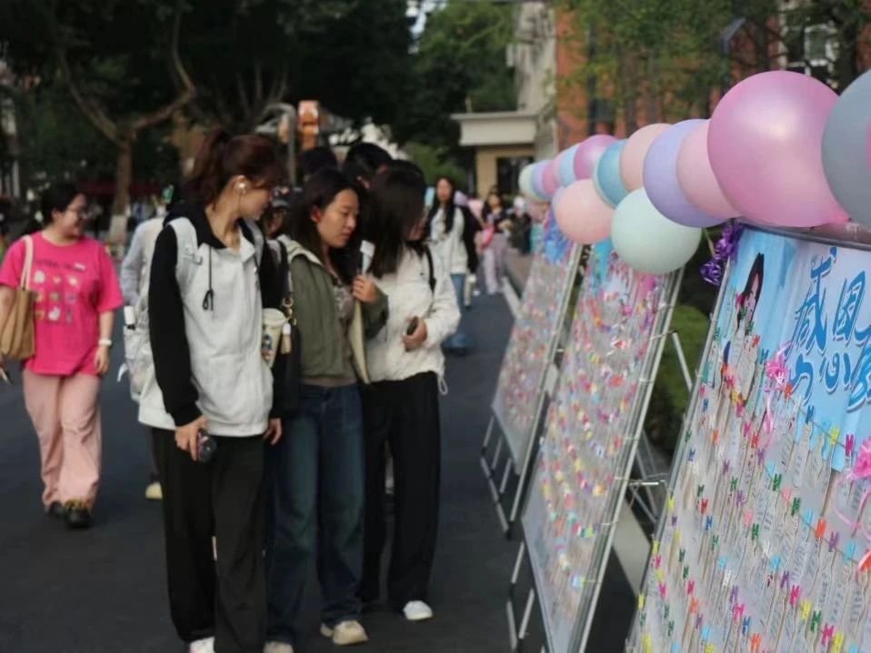 在这个充满温情与敬意的九月,学院1200多名学生,怀着感恩的心,利用自己专业的语言,在精美的小卡片上写下自己内心最诚挚的祝福,每一张贺卡都承载着学生对教师最真挚的情感。随后,学院收集所有卡片并悬挂在宣传板上,在三号楼门前进行展示。