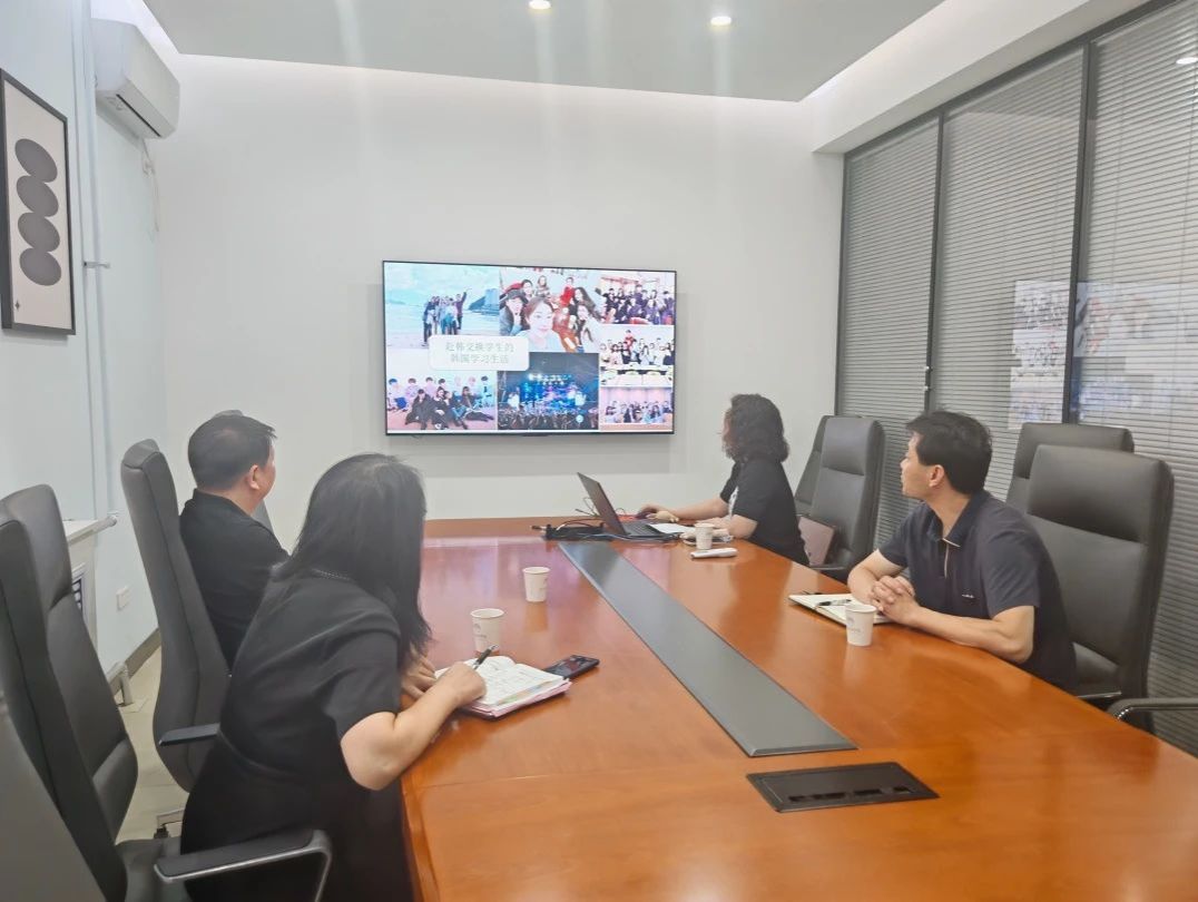 9月20日下午,副校长王霖、招生处处长宋海燕莅临beat365在线唯一官网调研交流。beat365在线唯一官网党委书记、副院长宇文永康,日韩系副主任邹俊秀参会。