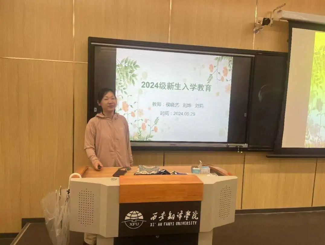 2024级应用日语专业的新生专业教育由王莎老师主讲。王老师以“应用与创新”为核心,重点介绍了应用日语专业的特色与发展方向,帮助同学们明确专业学习的实际应用价值。她还分享了多名优秀毕业生的案例,展示了应用日语专业的广阔职业发展空间,鼓励新生从入学之初就树立明确的目标,并积极参加学校的各类创新创业项目及实习机会。