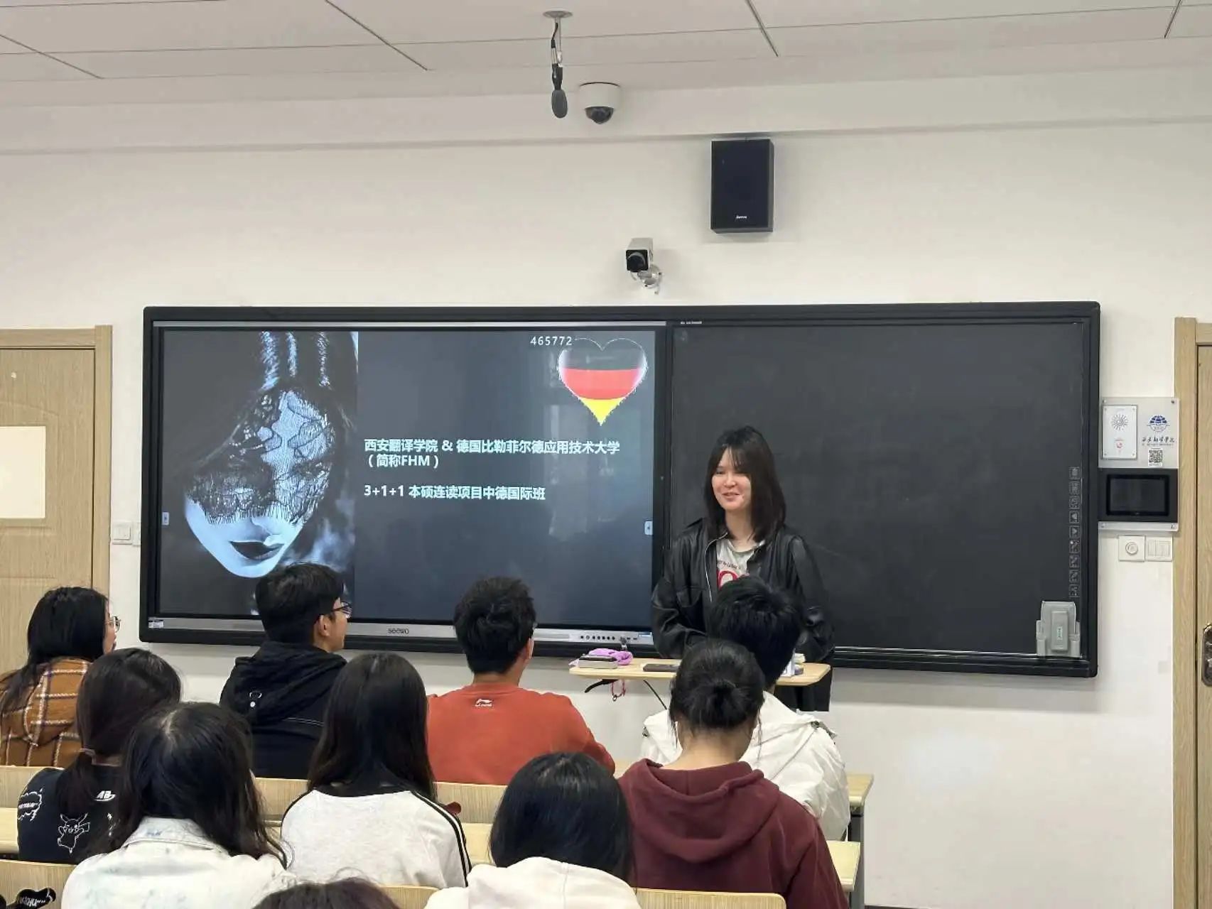 董琦详细介绍了“beat365在线唯一官网与德国比勒菲尔德应用技术大学(FHM)3+1+1本硕连读中德国际班”项目,通过生动形象的语言、丰富多彩的照片、切实的案例,使大家了解了合作模式、学校情况、课程设置、实习实训等内容。该项目不仅有助于提升学生的语言技能,也为大家提供了国际化的学术体验,帮助他们在未来职业生涯中脱颖而出。