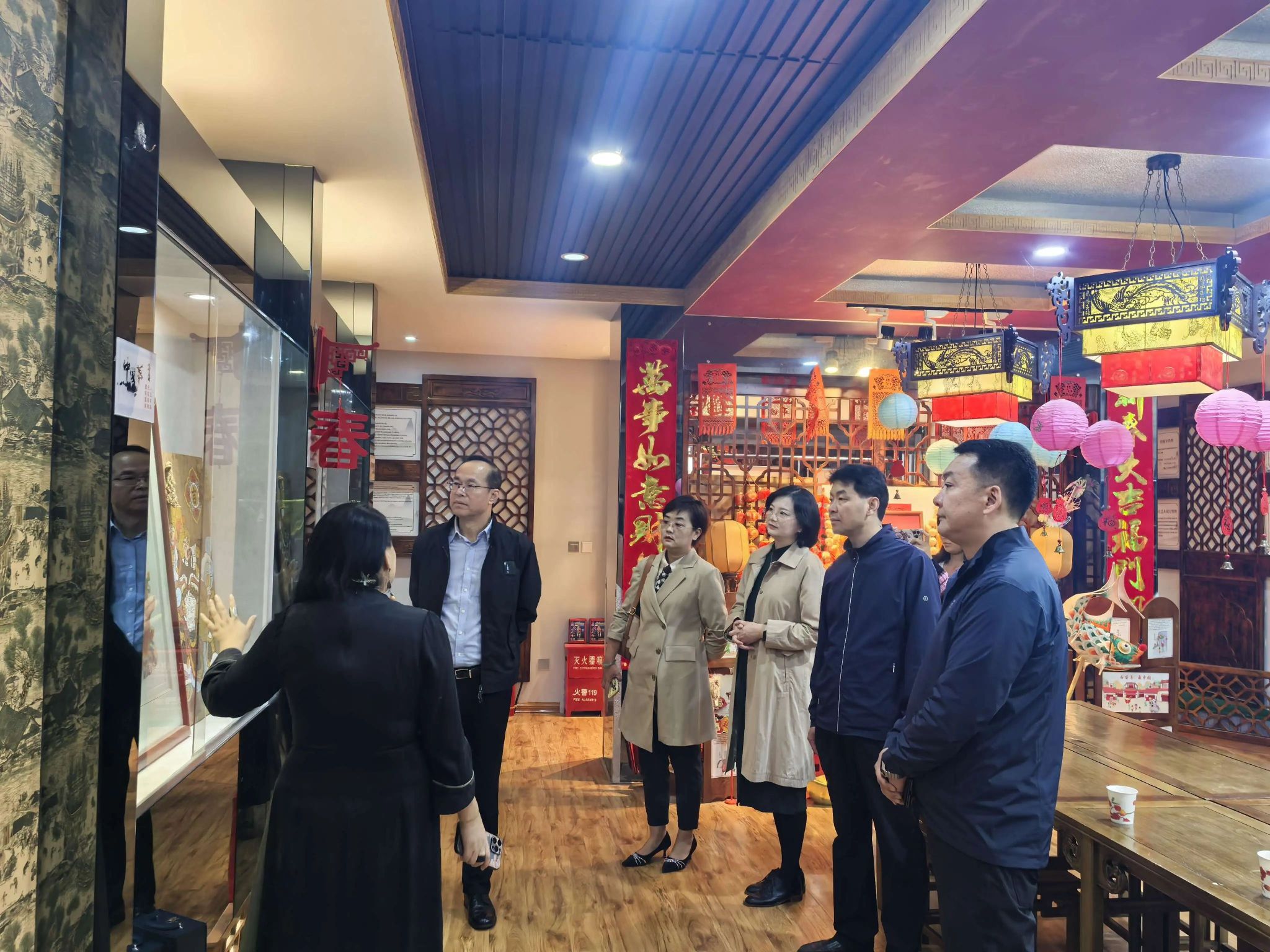 调研活动首先由王敏馆长引领参观了非遗展厅,全面展示了包括剪纸、中医、美食、大漆、古琴谱等在内的多项国家级、省级非物质文化遗产项目成果。随后,杨宁调研员介绍了文化馆的整体情况,王敏馆长则详细阐述了碑林区非遗项目的具体情况,并分享了文化馆在非遗项目发掘、保护传承及文创研发方面的实践经验。