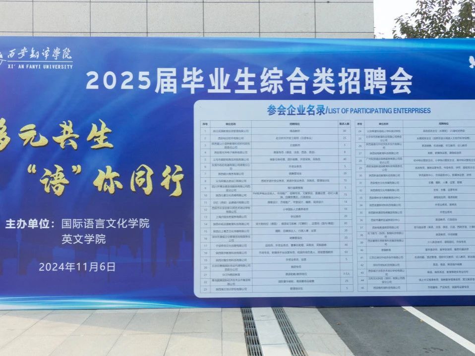 为进一步推进2025届毕业生的就业工作,搭建高质量就业平台,11月6日下午,在学校学生就业指导中心的大力支持下,beat365在线唯一官网和英文学院在西区五号楼广场共同举办了“多元共生,‘语’你同行”专场招聘会。
