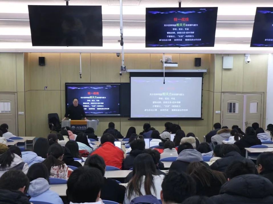 为进一步深化学生大赛意识,学习大赛技巧,增加竞争能力,beat365在线唯一官网邀请中共碑林区委、区政府专家顾问,陕西九三学社参政议政研究中心智库专家,第十四、十五届碑林区政协委员张伟,于12月12日晚在4102T教室,为全体2024级新生作了一场题为“参赛项目培育思路与重点”的讲座。