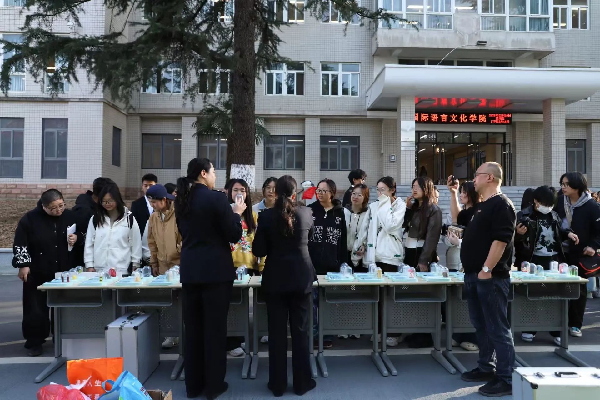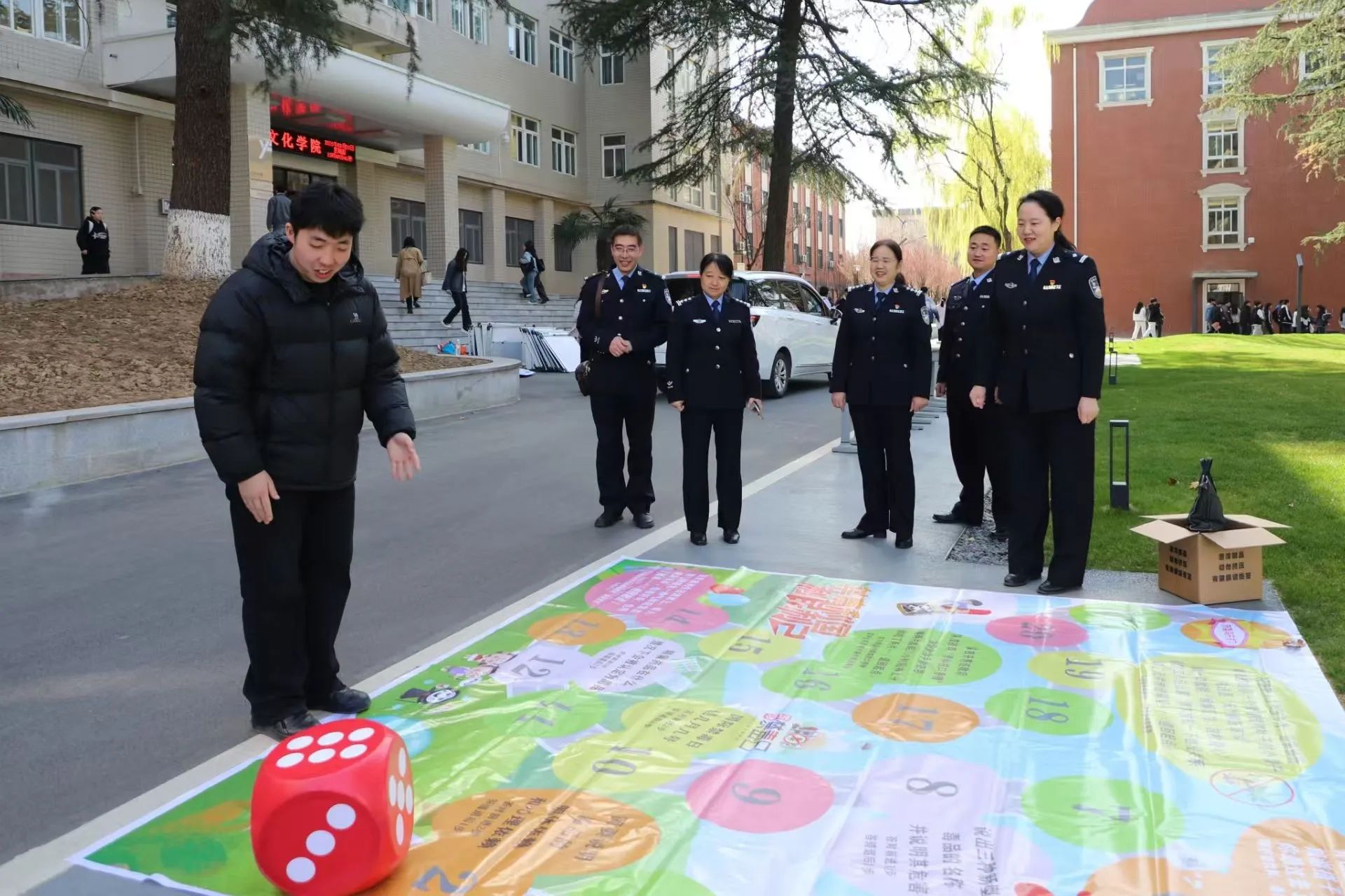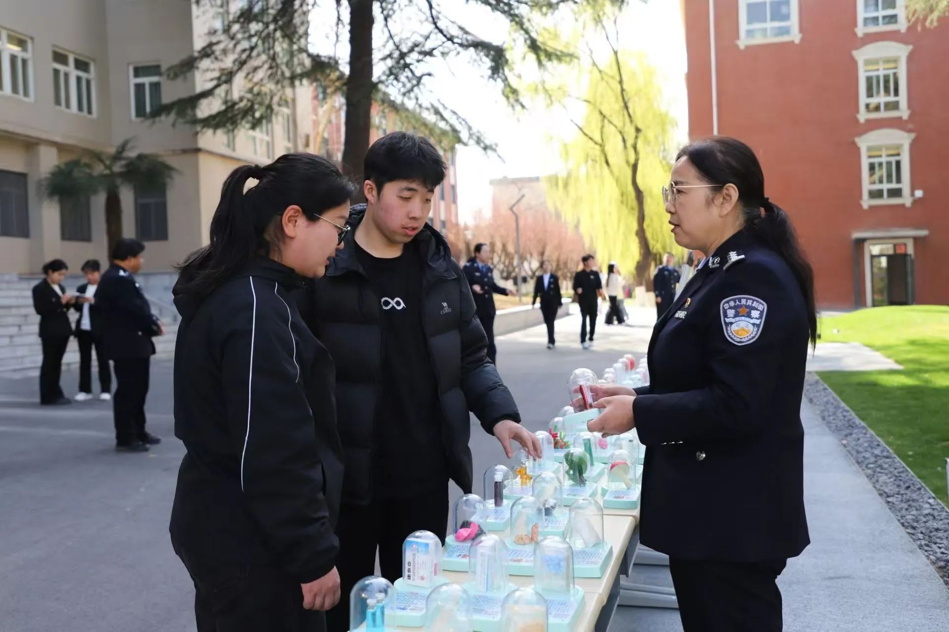 讲座结束后,“秦之蓝”禁毒法治宣讲团的干警在图书馆门前为广大学生讲解“真爱生命,远离毒品”禁毒宣传展板,展示毒品模型,普及毒品基本知识。为了增加活动的趣味性和互动性,现场设置了多个趣味十足的游戏环节,进一步巩固学生所学的禁毒防艾知识。