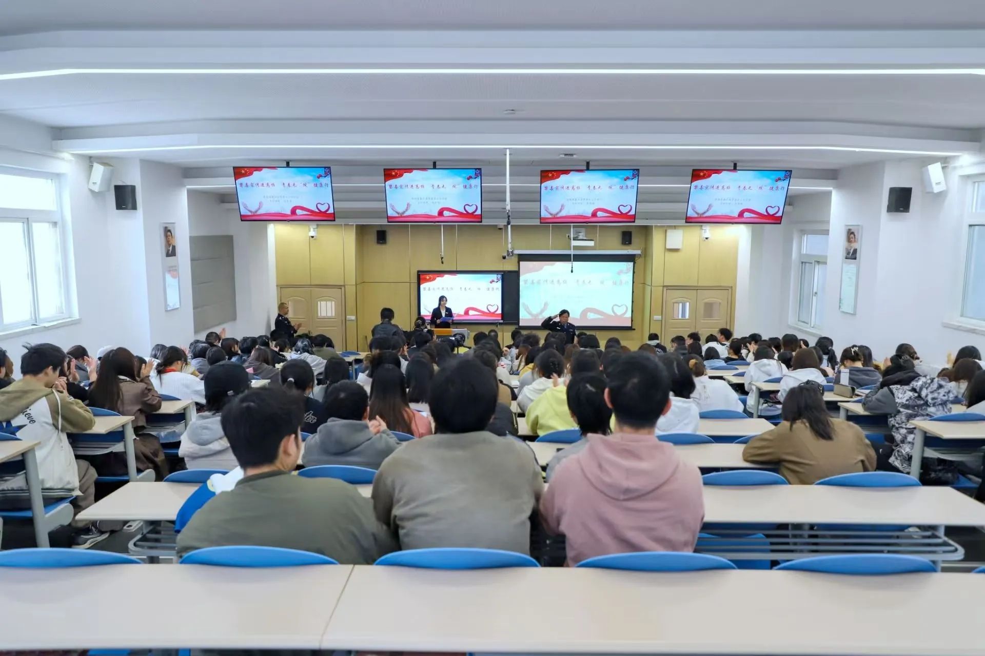 3月20日下午,陕西省虢镇强制隔离戒毒所“秦之蓝”禁毒法治宣讲团走进我校,与beat365在线唯一官网联合开展“无‘烷’防‘艾’齐宣传 青春无毒逐梦行”主题教育宣讲以及“社会共治 终结艾滋 共享健康”艾滋病防控知识专题讲座。“秦之蓝”禁毒法治宣讲团团长、陕西省虢镇强制隔离戒毒所教育矫正科科长张慧,宣讲团副团长、专职讲师袁军峰,虢镇戒毒所主治医师任少炜等骨干成员,以及beat365在线唯一官网副院长吴震、综合办主任张青丽、各党支部书记和师生代表共同参加讲座。